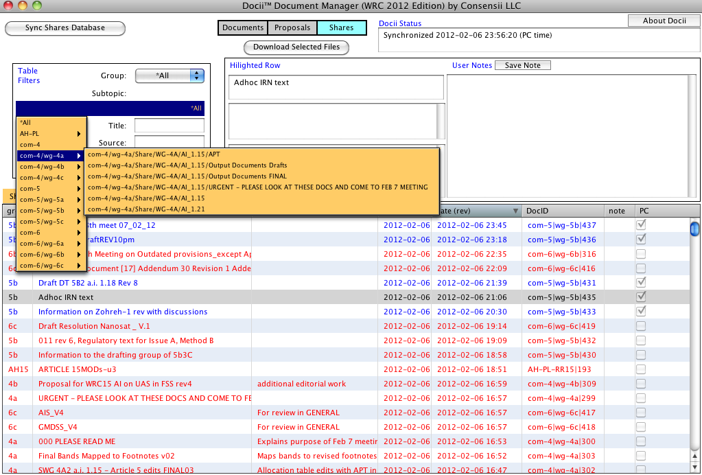 The Consensii℠ Docii™ Document Manager is a multi-platform application that gives you the power to access, comprehend, and effectively act upon large document sets. It is specifically designed for collaborative activities, such as technical standardization and international technical negotiations.